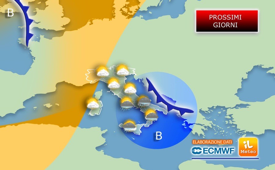 Meteo Prossimi Giorni: da Mercoledì 18 impulso freddo dai Balcani, precipitazioni intense al Centro-Sud